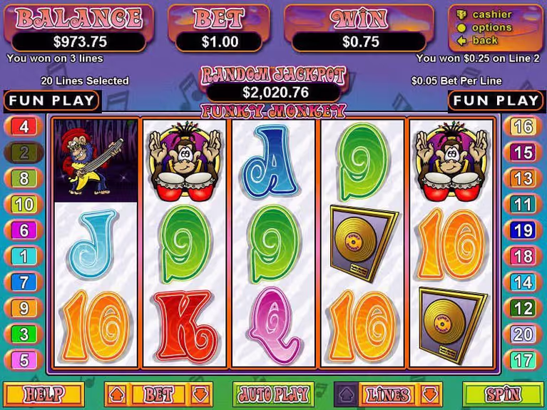 Funky Monkey Slots isn't just another slot game; it's an invitation to a world of fun, music, and big wins. With its engaging graphics, lively soundtrack, and rewarding features, this game offers an unforgettable online casino experience. Whether you're in it for the thrill of the spin or the potential for impressive payouts, Funky Monkey Slots delivers in every way. So, why wait? Dive into this groove-filled jungle adventure and see what incredible rewards await you.